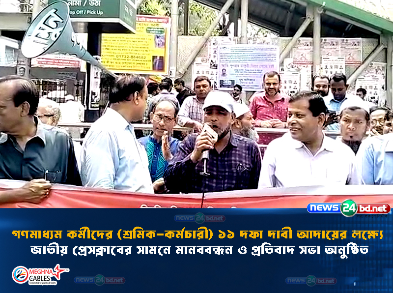 সকল সংবাদপত্র ও গণমাধ্যম প্রতিষ্ঠানে ৯ম ওয়েজ বোর্ড পূর্ণাঙ্গ বাস্তবায়ন, গণমাধ্যম সংস্কার কমিশন বাতিলসহ আমাদের প্রাণের দাবি ১১ দফা বাস্তবায়ন করতে হবে। এ সময় সংগঠনের নেতৃবৃন্দসহ অন্যান্য গণমাধ্যম কর্মী উপস্থিত ছিলেন।