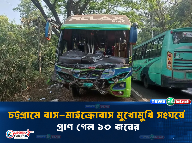 চট্টগ্রামের লোহাগড়ায় রিলাক্স পরিবহন-মাইক্রোবাস বাসের মুখোমুখি সংঘর্ষে ১০ জন নিহত হয়েছেন। এ ঘটনায় আহত হয়েছেন আরও পাচঁ জন। ঘটনাস্থলে মারা যান মাইক্রোবাসের ৭ যাত্রী। পরে হাসপাতালে চিকিৎসাধীন আরও তিনজন মারা যান বলে জানা গেছে।