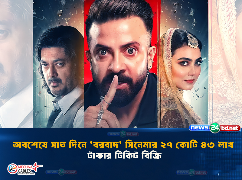 ঈদে মুক্তির প্রথম সাত দিনে ২৭ কোটি ৪৩ লাখ টাকার টিকিট বিক্রি হয়েছে দেশের শীর্ষ নায়ক শাকিব খান ‘বরবাদ’ সিনেমার। প্রযোজনা প্রতিষ্ঠান রিয়েল এনার্জি প্রডাকশন এক ফেসবুক পোস্টে এমন দাবি করেছে।