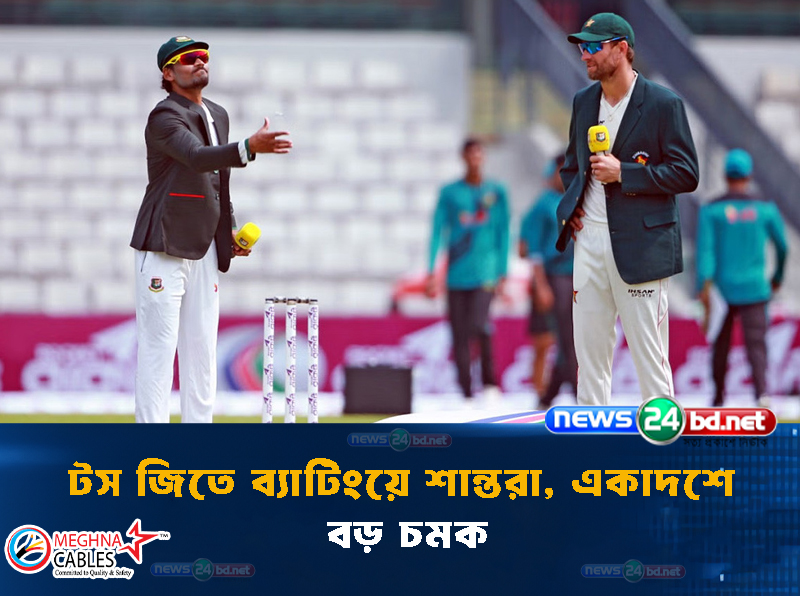 সিলেট টেস্টে জিম্বাবুয়ের বিপক্ষে টস ভাগ্য সহায় হয়েছে বাংলাদেশ দলের অধিনায়ক নাজমুল হোসেন শান্তর। আজ রোববার (২০ এপ্রিল) টস জিতে আগে ব্যাট করার সিদ্ধান্ত নিয়েছেন তিনি।