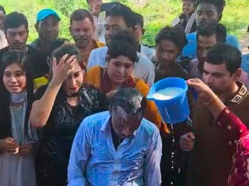 এর আগে ফেসবুকে তিনি লিখেছিলেন—ভক্তরা দুধ নিয়ে আসছেন তাকে গোসল করানোর জন্য। সেই ঘোষণা অনুযায়ী তালাকের পর দুধ দিয়ে গোসলও করেন তিনি।