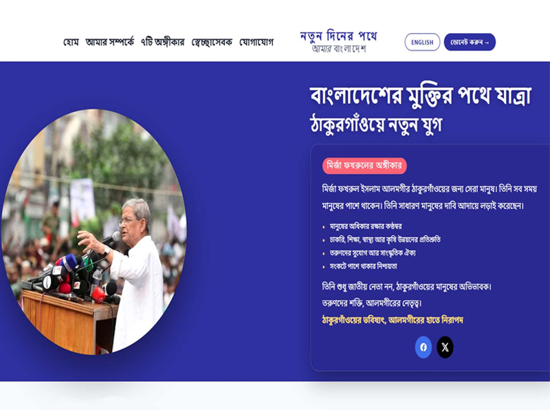 বৃহস্পতিবার (১৯ ফেব্রুয়ারি) নিজের ভেরিফায়েড ফেসবুক পেজে মির্জা ফখরুল এ তথ্য জানান। তিনি পোস্টে বলেন, ঠাকুরগাঁও-১ এর যে কোনো এলাকায় চাঁদাবাজি, দখলবাজি, অন্যায়/অপরাধ বা যেকোনো সমস্যার কথা সরাসরি ওয়েবসাইটের মাধ্যমে জানানো যাবে।
