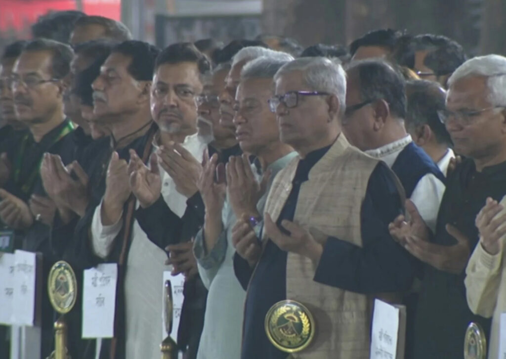 রাত ১২টা ১ মিনিটে প্রথমে রাষ্ট্রপতি মো. সাহাবুদ্দিন শহীদ মিনারে পুষ্পস্তবক অর্পণ করেন। এরপর পুষ্পস্তবক অর্পণ করেন প্রধানমন্ত্রী তারেক রহমান। পুষ্পস্তবক অর্পণের পর তিনি ভাষা আন্দোলনের বীর শহীদদের স্মৃতির প্রতি শ্রদ্ধা জানিয়ে কিছুক্ষণ নীরবে দাঁড়িয়ে থাকেন।