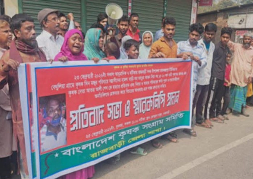 প্রতিবাদ সভায় নিহতের স্ত্রী মর্জিনা বেগমের স্বজনরা এবং সংগঠনের জেলা সভাপতি আনিসুর রহমান ও সাধারণ সম্পাদক চুন্নু মোল্লা বক্তব্য রাখেন। বক্তারা অভিযোগ করেন, কৃষক নেতা আতর আলী শেখকে পরিকল্পিতভাবে হত্যা করা হয়েছে। তারা দ্রুত আসামিদের গ্রেপ্তার ও দৃষ্টান্তমূলক শাস্তির দাবি জানান। পাশাপাশি নিহতের পরিবার ও আহতদের উপযুক্ত ক্ষতিপূরণের দাবিও তোলেন।