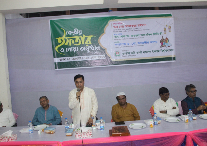 জাতীয় কবি কাজী নজরুল ইসলাম বিশ্ববিদ্যালয় প্রশাসনের উদ্যোগে প্রায় ৫৫০০ শিক্ষক, শিক্ষার্থী, কর্মকর্তা ও কর্মচারীর অংশগ্রহণে কেন্দ্রীয় ইফতার ও দোয়া মাহফিল অনুষ্ঠিত হয়েছে। বুধবার (২৫ ফেব্রুয়ারি ২০২৬) বিশ্ববিদ্যালয়ের নতুন কলা অনুষদ ভবন ও বিজ্ঞান ও প্রকৌশল অনুষদ ভবনের মাঝখানে এ আয়োজন করা হয়।
