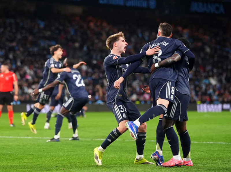 ম্যাচ যখন ড্রয়ের দিকেই এগোচ্ছিল, তখন যোগ করা সময়ের পঞ্চম মিনিটে আসে নাটকীয় মুহূর্ত। বক্সের বাইরে থেকে ফেদেরিকো ভালভার্দের জোরালো শট প্রতিপক্ষের এক ডিফেন্ডারের গায়ে লেগে দিক পরিবর্তন করে জালে জড়ায়। এতে কিছুই করার ছিল না সেল্টার গোলরক্ষকের। এই গোলেই স্বস্তির জয় নিশ্চিত হয় রিয়াল মাদ্রিদের।