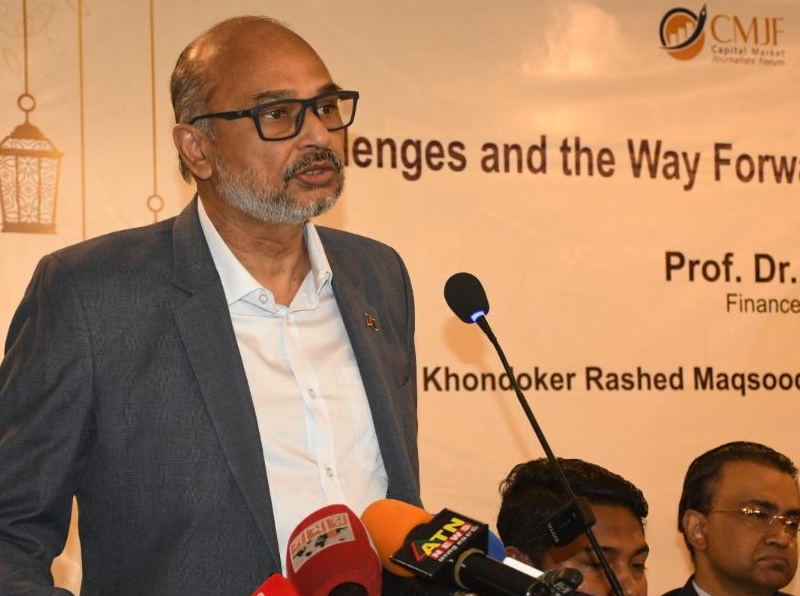 রোববার রাজধানীর একটি হোটেলে শেয়ারবাজার বিষয়ক সেমিনারে তিনি এসব কথা বলেন। অনুষ্ঠান আয়োজন করে ক্যাপিটাল মার্কেট জার্নালিস্টস ফোরাম (সিএমজেএফ)। সেমিনারে বিশেষ অতিথি ছিলেন বাংলাদেশ সিকিউরিটি অ্যান্ড এক্সচেঞ্জ কমিশন (বিএসইসি) চেয়ারম্যান খন্দকার রাশেদ মাকসুদ এবং জাতীয় রাজস্ব বোর্ড (এনবিআর) চেয়ারম্যান আব্দুর রহমান খান।