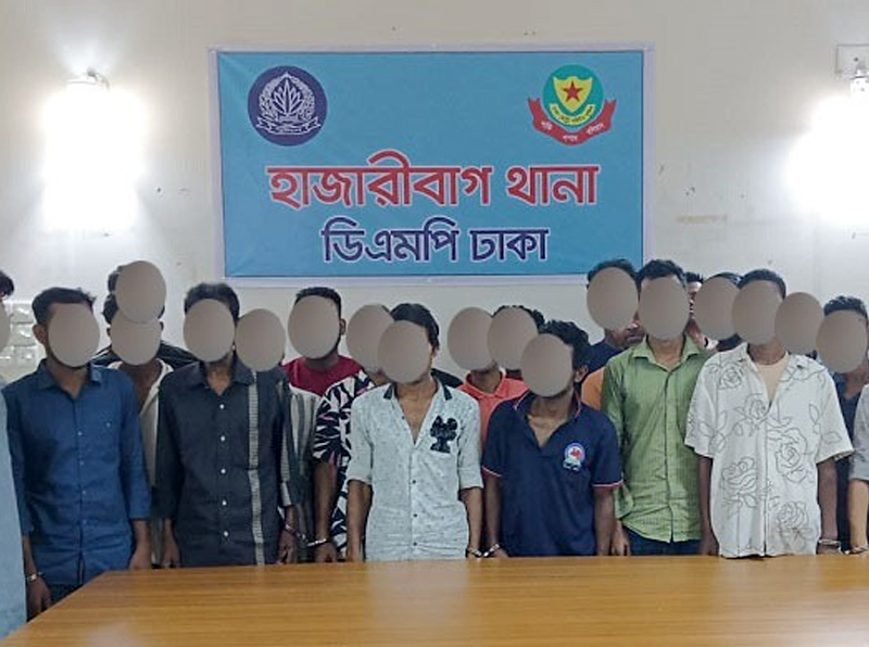 গ্রেফতারকৃতরা হলো- ১। সুমন (২৭) ২। মো: লিমন (২৫) ৩। সুজন দাস (২২) ৪। মোঃ মামুন মিয়া (২৩) ৫। মোঃ ফজলে রাব্বী (২২) ৬। মোঃ মোক্তার হোসেন (৫৪) ৭। মো: রবিউল মোল্লা (৪৫) ৮। মো: তানভীর হোসেন (১৯) ৯। মো: জুয়েল (২১) ১০। মো: ইব্রাহীম হোসেন (১৯) ১১। মো: গোলাম রাব্বি (২৩) ১২। মো: মালেক (২৯) ১৩। মো: রুম্মান (২৩) ১৪। মোহাম্মদ আকাশ (২২) ১৫। মোঃ সবুজ হোসেন (৪১) ১৬। মোঃ আতিকুর রহমান (২৫) ১৭। মোঃ সবুর মোল্লা (৩৫) ১৮। মোহাম্মদ কাইয়ুম হোসেন (৩৫) ১৯। মোঃ ফাহিম (২০) ২০। মোহাম্মদ রিফাত (২০) ২১। মো: আসিফ (২৪) ২২। মো: আলাউদ্দিন (৪৬) ২৩। মোঃ শাওন (২৭) ২৪। মো: আলী (৩৪) ২৫।