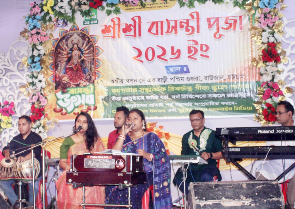 চট্টগ্রামের রাউজান উপজেলার পশ্চিম গুজরা এলাকায় স্বর্গীয় স্বপন দে’র বাড়িতে শ্রীশ্রী বাসন্তী পূজা উদযাপন পরিষদের উদ্যোগে চারদিনব্যাপী বর্ণাঢ্য ধর্মীয় ও সাংস্কৃতিক অনুষ্ঠান সম্পন্ন হয়েছে। গত ২৪, ২৫, ২৬ ও ২৭ মার্চ ২০২৬ তারিখে অনুষ্ঠিত এই আয়োজনে ভক্তদের ব্যাপক অংশগ্রহণে এলাকা উৎসবমুখর হয়ে ওঠে।