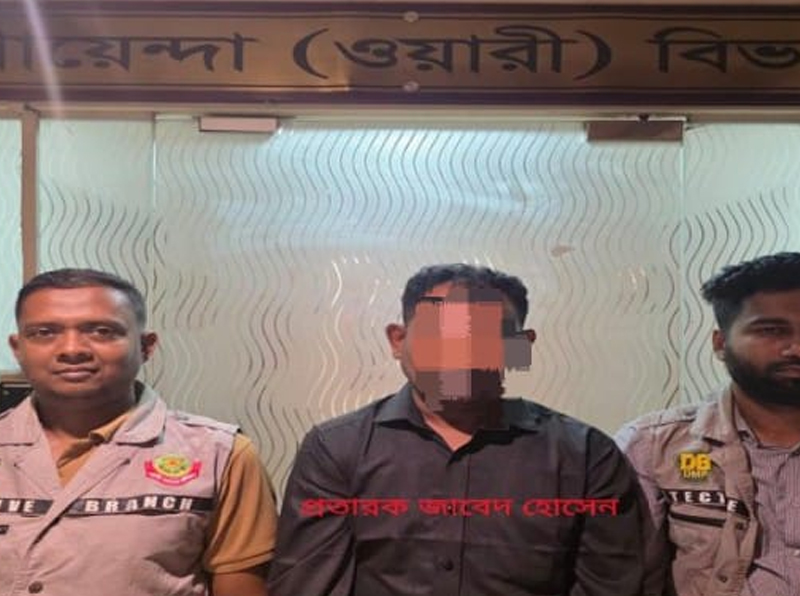 ভুয়া ডিবি পুলিশ পরিচয়ে প্রতারণার মাধ্যমে ১০ লাখ টাকা আত্মসাৎকারী একটি সংঘবদ্ধ চক্রের মূল হোতাকে গ্রেফতার করেছে ঢাকা মহানগর গোয়েন্দা পুলিশ (ডিবি) এর ওয়ারী বিভাগ।