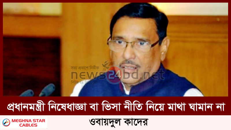 আওয়ামী লীগের সাধারণ সম্পাদক এবং সড়ক পরিবহন ও সেতুমন্ত্রী ওবায়দুল কাদের বলেছেন, ‘এই সরকার যাতে ক্ষমতায় থাকতে না পারে, সে জন্য তারা (বিরোধী দল) তাদের বিদেশি বন্ধুদের দিকে তাকিয়ে আছে। তবে আমাদের প্রধানমন্ত্রী কোনো নিষেধাজ্ঞা বা ভিসা নীতি নিয়ে মাথা ঘামান না।’